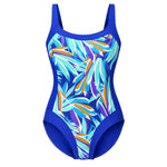 Enoe Swim Electric Swimsuit i blå med print. En flot og farverig badedragt fra Enoe Swim, lavet i et behageligt materiale, der føles rart mod huden. Det dekorative print pryder fronten og giver badedragten et elegant og feminint udtryk.